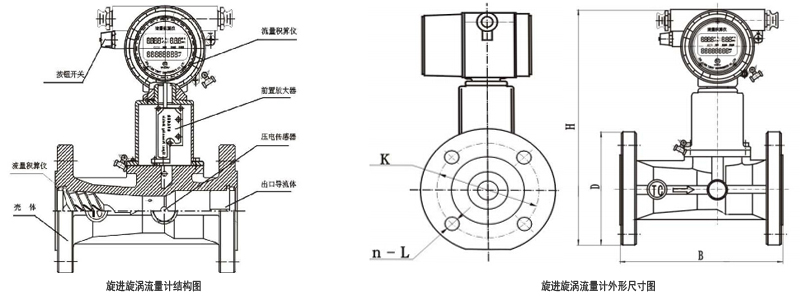 當沿著軸向的流體流量傳感器入品時,在漩渦發生體的作用下,被強制圍繞中心線旋轉,產生漩渦流,漩渦流在文丘利管中旋進,到達收縮段突然節流后,使漩渦流加速,當通過擴散段時,漩渦中心沿一錐形螺旋線進動。此時,漩渦中心通過檢測點的進動頻率與流體的流速成正比。由壓電傳感器檢測到的漩渦流進動頻率信號經放大、濾波、整形后轉換成流量值進行就地顯示或信號選擇。