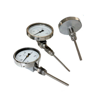 雙金屬溫度計是基于繞制成環性彎曲狀的雙金屬片組成。一端受熱膨脹時,帶動指針旋轉,工作儀表便顯示出熱點勢所應的溫度值。