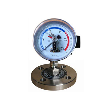 隔膜電接點壓力表設上下限二位開關型接點裝置在壓力達到設定值時發出信號或通斷控制電路,供作業系統自動控制或發訊用。其隔膜結構可有效隔離強腐蝕、高溫、高粘度、易結晶、易凝固、有固體浮動物的壓力介質,以保證電接點表頭能有效的測(控)系統或機械的工作壓力。隔膜電接點壓力表電接點壓力表特性廣泛應用于機械,化工、石油冶金、電力,制堿,水處理等工業過程或機電配套中測量無爆炸危險的各種流體介質的壓力。通常,儀表經與相應的電氣器件(如繼電器及接觸器等)配套使用,即可對被測(控)壓力系統實現自動控制和發信(報警)的目的。