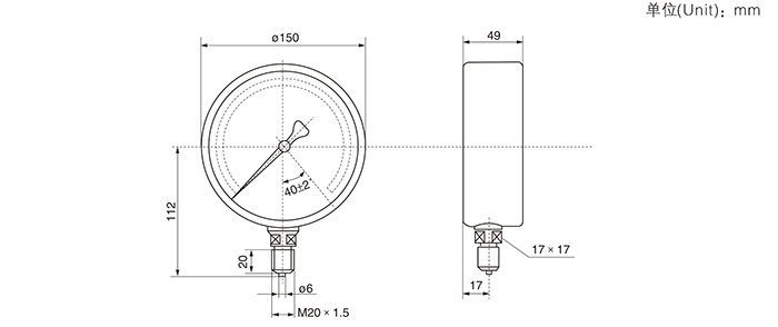 四、電阻遠(yuǎn)傳壓力表外形尺寸圖: