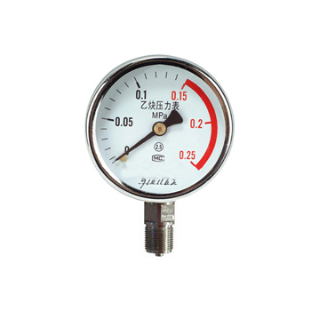 YY乙炔壓力表適用測(cè)量乙炔介質(zhì)的壓力。嚴(yán)禁接觸油脂類物質(zhì)。
